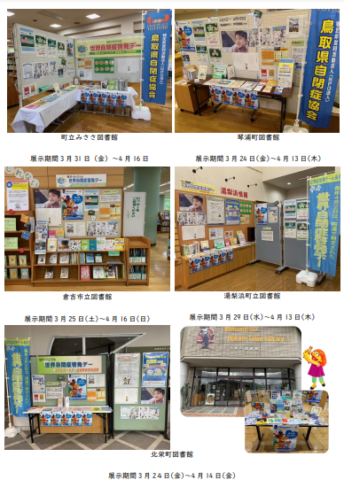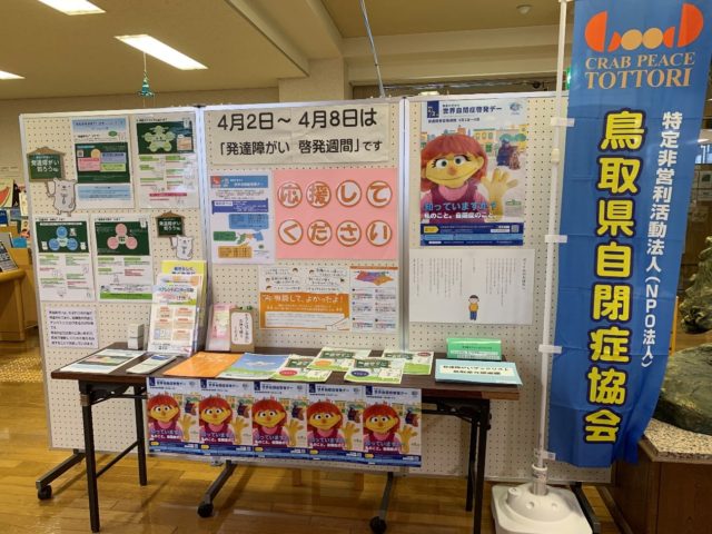 町立みささ図書館・琴浦町立図書館・倉吉市立図書館・湯梨浜町立図書館・北栄町図書館では、図書館との共催にて世界自閉症啓発デーの啓発展示を開催中です!