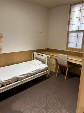 外来受付から広がるホールには、令和5年9月、リニューアルオープン❣の素敵なカフェ“もりのみ”があります。あずさパン工房(多機能型就労支援事業所)で作ったパンやお菓子を販売しておられます。近隣のかたにも自由に利用していただきたいと話され、地域に根差した訪れやすい精神科病院にしたいという思いが随所にみられました。 Wi-Fi完備でお庭の見えるのんびりくつろげる空間です。ぜひ、癒しと憩いの場所にご利用ください☕。